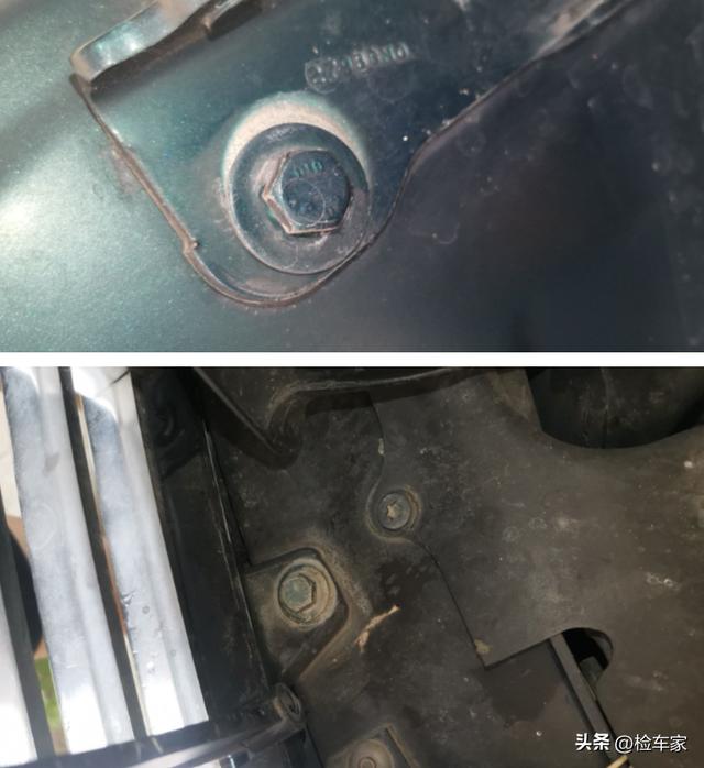 既然卖家说前面发生过碰撞,那前面的水箱框架肯定是有拆卸痕迹的。